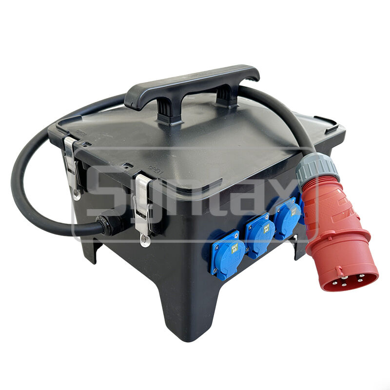 라이브 이벤트, 스포츠 이벤트, 영화 및 TV에 사용하기 위한 이 CEE 표준 휴대용 배전반은 정격 32AMP, 400VAC, IP44 방수입니다. 수신은 4P 40A 30mA RCD 보호 기능을 갖춘 1.2미터의 유연한 5x4mm2 고무 케이블이 있는 32A/5P 400V IP44 플러그입니다. 나가는 소켓 1-2는 2개의 3P 32A MCB로 보호되는 2개의 32A/5P 400v IP44 패널 장착 소켓이고, 나가는 소켓 3-8은 6개의 1P 16A MCB로 보호되는 6개의 16A/2P+E 220v IP44 schuko 소켓입니다. 모든 산업용 플러그 및 소켓은 유명 브랜드 Weipu에서 제작되었습니다. 유명한 브랜드 Schneider의 차단기. 박스는 PC로 제작되었으며 IP67 방수로 특히 무대 행사에 적합합니다. 우리는 주문에 따라 맞춤형 배전함을 제작할 수 있습니다.