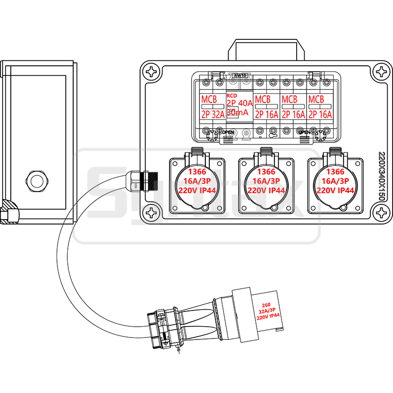 실외용 32 AMP 단상 벽걸이형 분전반은 PC 재질로 제작되었으며, MCB+RCCB로 보호되는 3P 32A 220v 플러그가 있는 연장 케이블 3C4mm2 1.5m가 있습니다. 출력 소켓은 3개의 2P 16A MCB로 보호되는 패널 장착형 스트레이트 타입 3P 16A 220v IP44 소켓입니다. 모든 전원 분배 보드는 주문 제작됩니다.