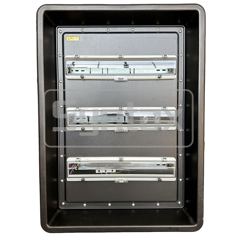 | 출력 1-6 | 6×3P 16A 220V IP67 패널 장착형 소켓, 6×1P+N 16A 30mA RCBO로 보호 |